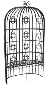 Скамейка с навесом К-96 – лучший способ украсить сад. Прекрасное украшение любой дачи или парка. Металлическая конструкция вокруг скамьи предусмотрена для использования ее в качестве перголы. Особое волшебство появляется у комплекта, когда вьющиеся цветы или растения обвивают кованую решетку. Прочная и тяжелая конструкция их чугунного литья.