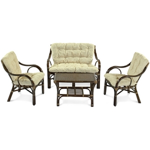 Изготовлен из натурального ротанга, состоит комплект из двух кресел, дивана и