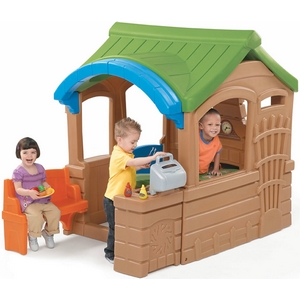 Особенности: Возраст: 1+ Домик состоит из: кухни с имитацией камина, раковины со столешницей, патио со встроенным грилем, скамейки и двери со звонком. В комплект поставки входят 5 аксессуаров для приготовления гриля: лопатка, вилка, щипцы, горчица, кетчуп.