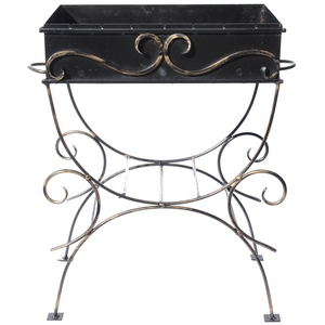 Особенности: топка усилена ребрами жесткости и решеткой на дне, что увеличивает срок эксплуатации и сопротивление деформациям от высоких температур. В нижней части топки есть отверстия, обеспечивающие естественный поддув. Изготовлен мангал из высококачественной стали марки СТ-3. Толщина стенок топки 2 мм. Мангал оборудован удобной полкой для дров. Все декоративные элементы ковки сделаны вручную.