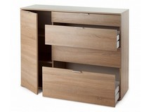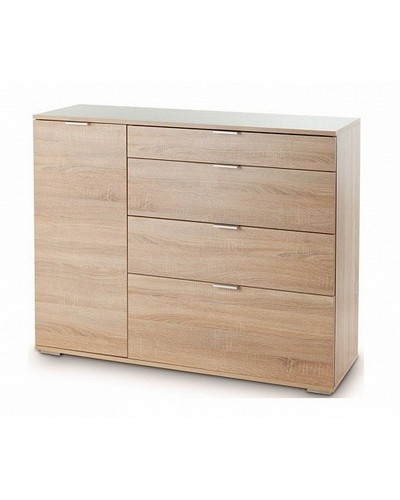 Дополнительно:Комод НК-3 дуб сонома имеет 4 выдвижных ящика с шариковыми направляющими и распашную дверцу