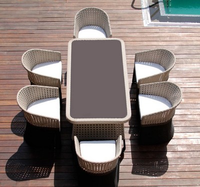 Стол: искусственный ротанг на алюминиевом каркасе со столешницей из закалённого стекла