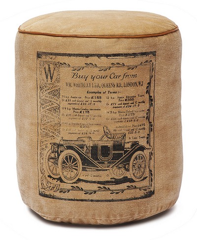 Пуф Secret de Maison (Секрет де Мезон) 4622 из коллекции Loft (Лофт) с винтажным рисунком автомобильной тематики.