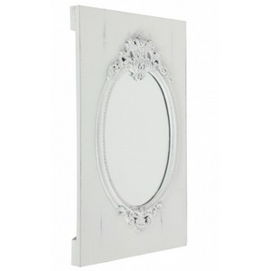 Зеркало овальной формы в прямоугольной раме украшено декоративной репниной.
